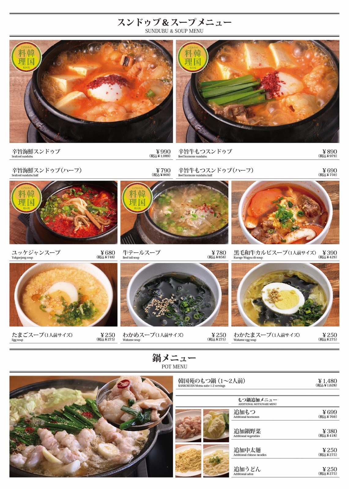 Primary Menu 焼肉韓国苑 大在店